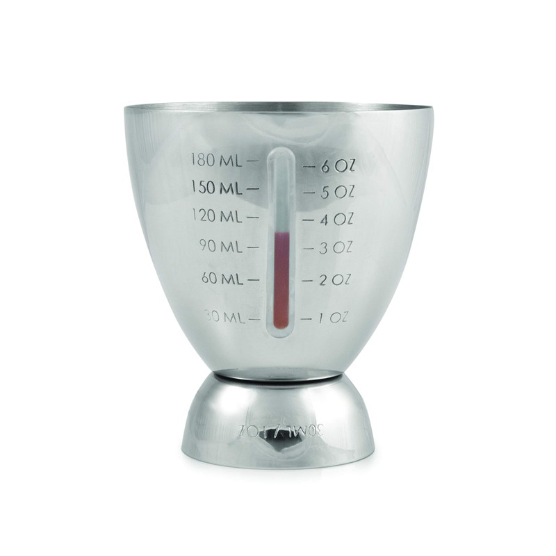 - HIGH PRECISION - Generously sized for a heavy pour or batch cocktails, this jigger has a 1 oz base and 6 oz jigger with standard and metric notations for precise drinks. Designed with a food-safe silicone viewing window for perfect accuracy.