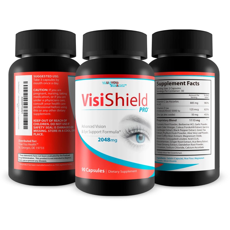Fortunately, specific nutrients can play a vital role in supporting vision health and eye health. Enter VisiShield Pro vision support supplement, expertly formulated to help protect eye cells from free radical damage and promote optimal vision. This Advanced Vision & Eye Support Formula boasts a comprehensive blend of 20+ essential vision vitamins, minerals, herbs, and antioxidants, all working harmoniously to bolster vision and help counteract the unavoidable environmental factors that can harm your eyesight. VisiShield Pro contains several key ingredients including Vitamin C, Vitamin D, Zinc, Turmeric, Green Tea, Acai Berry, and more for comprehensive ocular support.