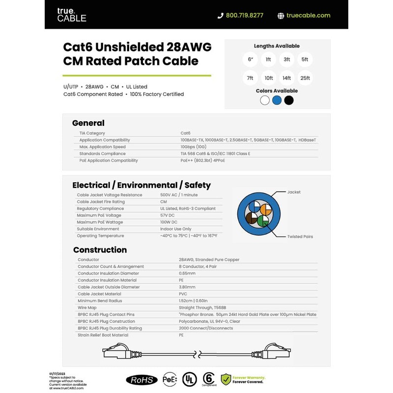 Unlike generic, mass-produced cables, trueCABLE Cat6 Patch Cables are: