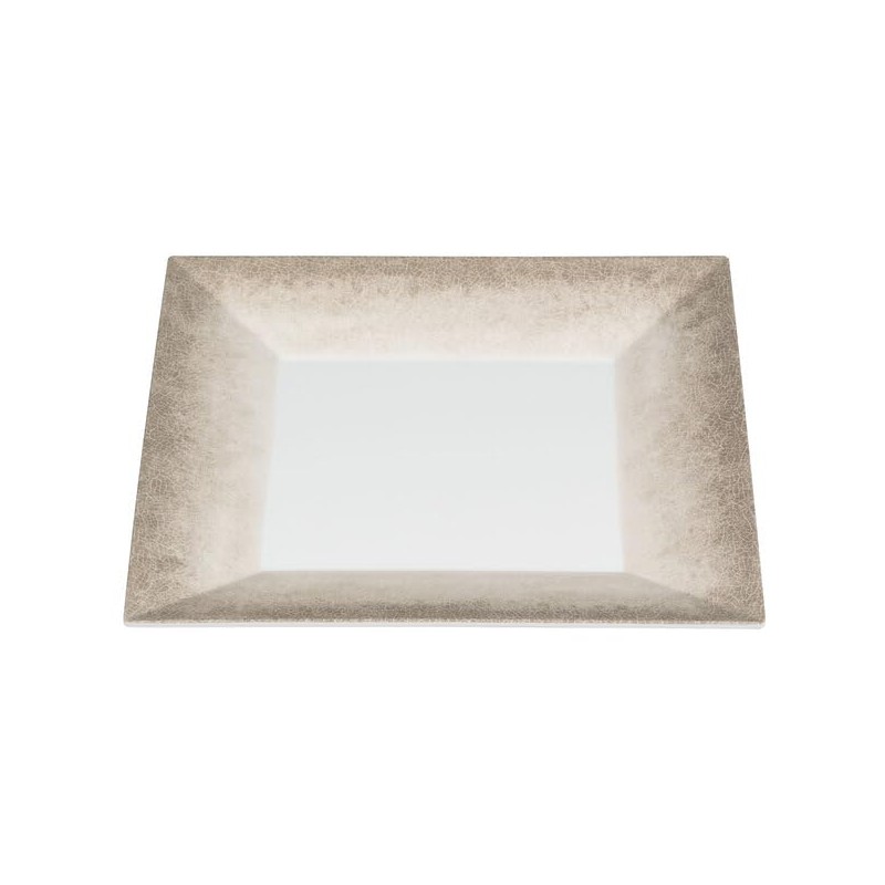 • This Jazz square melamine plate with crackle-finished border. This plate features a soft, off-white color that's accented by a light brown, crackle-finished border around the interior ledge. The design creates a one-of-a-kind, vintage appearance that's sure to add a stylish touch to any dining area. Jazz up the look and feel of your establishment by serving guests with this attractive plate.