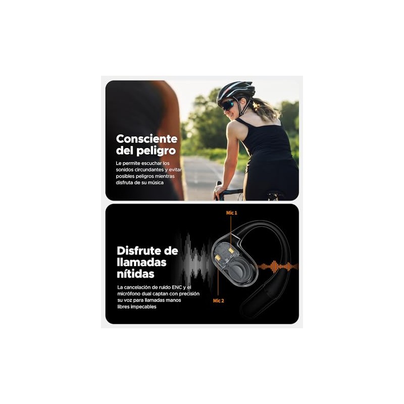 TRUEFREE O2 Open-ear Audífonos Bluetooth 5.3, Audífonos Inalámbricos Deportivos, Conduccion de Aire, llamadas claras de 4 mics, Impermeable IPX5, Bajo mejorados de 15 mm, Multiconexión,Total 22 Horas