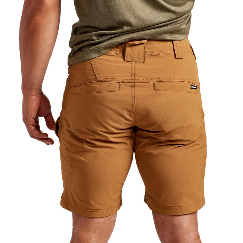 - HARD WEARING. HARD WORKING. - Lightweight and super breathable shorts with high tech durability; Active 4-way stretch with give at the thigh and seat that moves with you as you bend, climb, stretch, and maneuver on the jobsite; Sturdy and smooth zip fly with double button closure that holds up to hard work; Tactical belt loops to accommodate work belts of all sizes; Machine washable for easy care