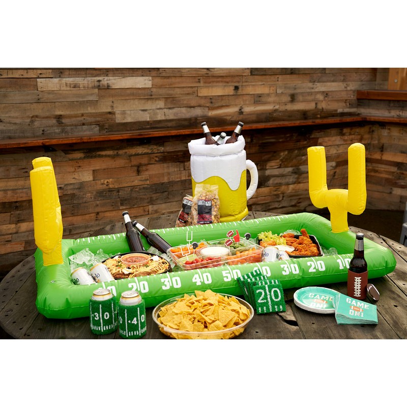 • KEEP YOUR BEER AND SNACKS COLD - Display beer, wine, soda, and more in this inflatable football field cooler tray. The inflatable design makes it easy to blow up when it’s party time, and easy to fold away when not in use. Score!