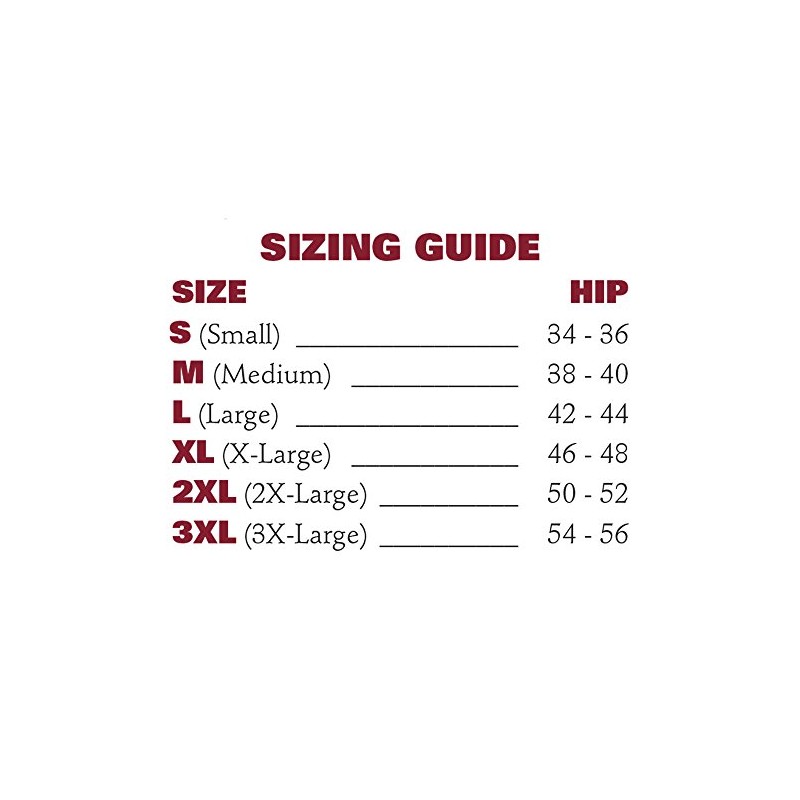 - Small (34 to 36 inches); Medium (38 to 40 inches); Large (42 to 44 inches); X-Large (46 to 48 inches); 2X-Large (50 to 52 inches); 3X-Large (54 to 56 inches)