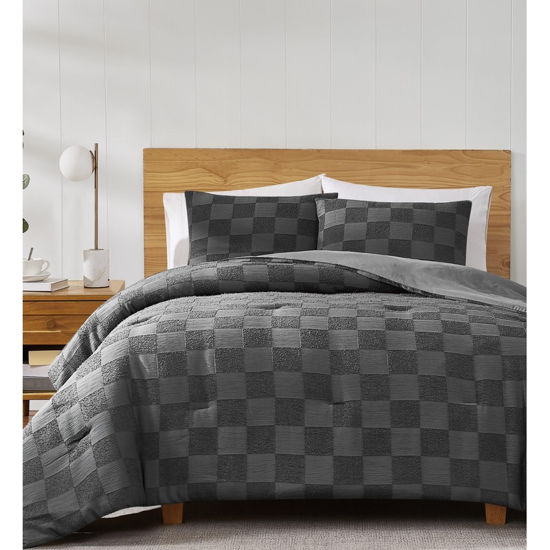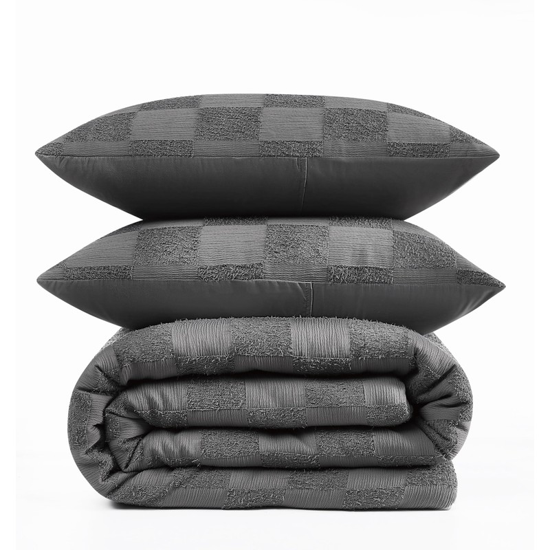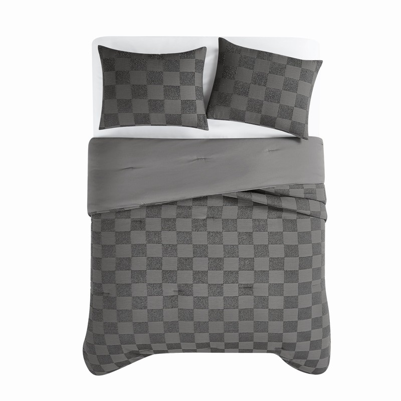 TRULY SOFT Textured Checkered Grey Full/Queen 3 Piece Comforter Set, Solid Color Themed, Oeko-TEX Certified Confidence