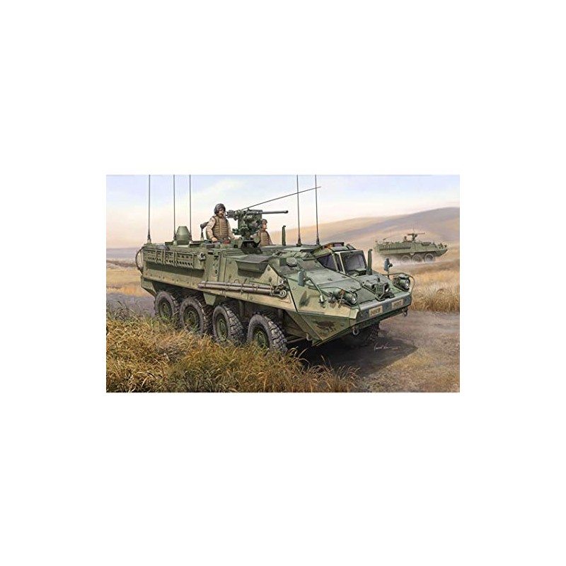 The M1130 Commander's Vehicle is an asset that bridges the gap between heavy mechanized forces and the light infantry. The commander's vehicle can track just about anything on the battlefield with its video display terminal. The commander can identify the units by clicking on their icons with a hand-held pointer. The M1130 can carry 36,133 pounds of equipment, but can reach speeds of up to 60 mph. This plastic model kit is an accurate representation of the military vehicle.