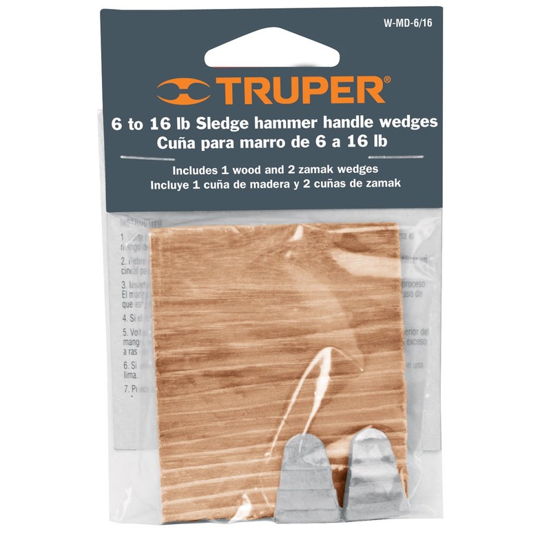 Truper code 33947 (item W-MD-6/16) wedges for sledges and mauls. One wood wedge, two steel wedges. Designed for use with wood handles. Keep sledge and maul heads secured tightly by replacing worn parts. Hickory handles are ideal for striking tools due to their durability and vibration dampening. Truper has been manufacturing quality tools for 50 years. Truper has been in the hand tool manufacturing business for over 50 years and is by far the largest Mexican company in its field. Truper relies on the most advanced modern and efficient technology to guarantee the optimum quality and value of its products and demanding service needs of the company's global customers. Stock up on quality Truper Tools for other projects today.