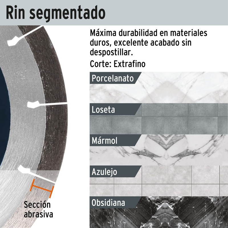 • Disco fabricado en acero con banda de diamante