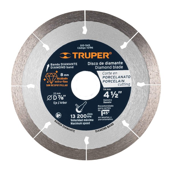 Truper DID-545, Disco de diamante de 4-1/2" x 1.3 mm corte de porcelanato