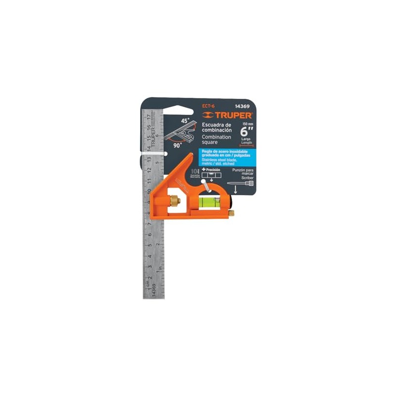 Truper ECT-6, Escuadra de combinación, acero inoxidable, 6"