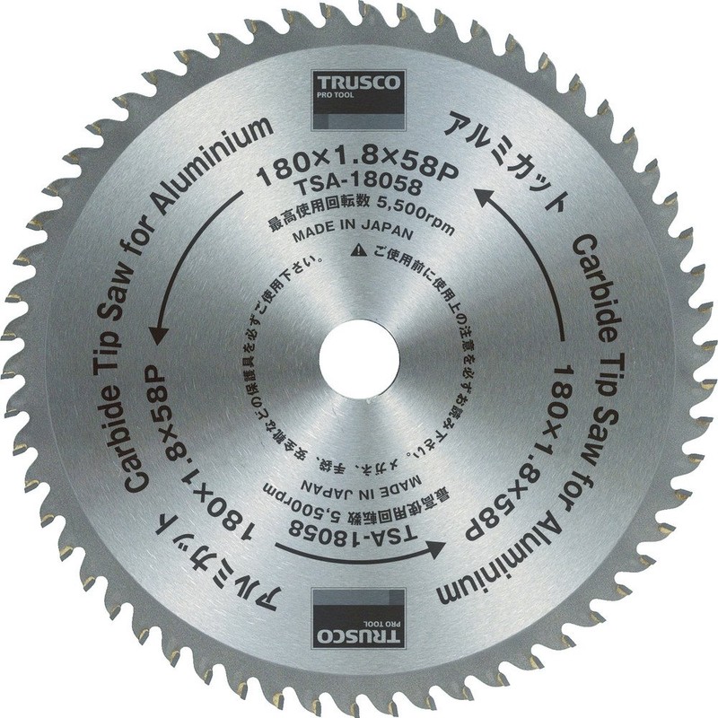 - Outer Diameter: 7.1 inches (180 mm), Cutting Capacity: Aluminum: 0.1 inches (3 mm), Blade Thickness: 0.07 inches (1.8 mm), Number of Blades: 2.3 inches (58 mm), Hole Diameter: 0.8 inches (20.0 mm), Maximum Rotational Speed: 500 rpm