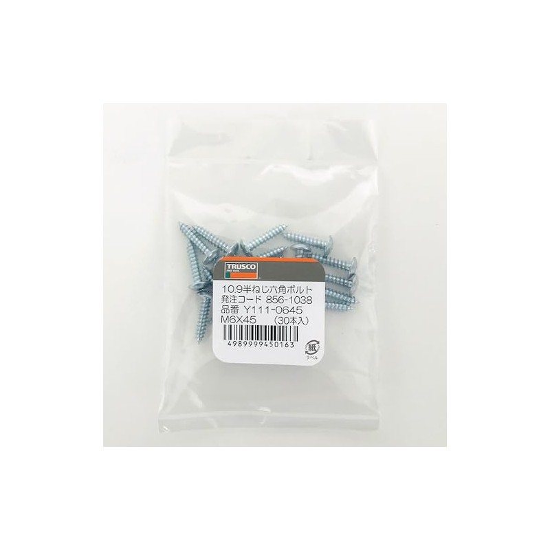 TRUSCO Y838-0306 Truss Head Tapping Screws, 1 Type A, Stainless Steel, M3 x 6, 20 Pieces, Small Quantity