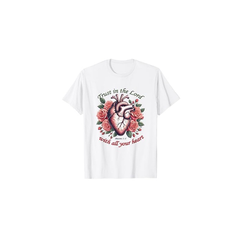 Trust in The Lord Christian Verse Floral Heart Tee T-Shirt