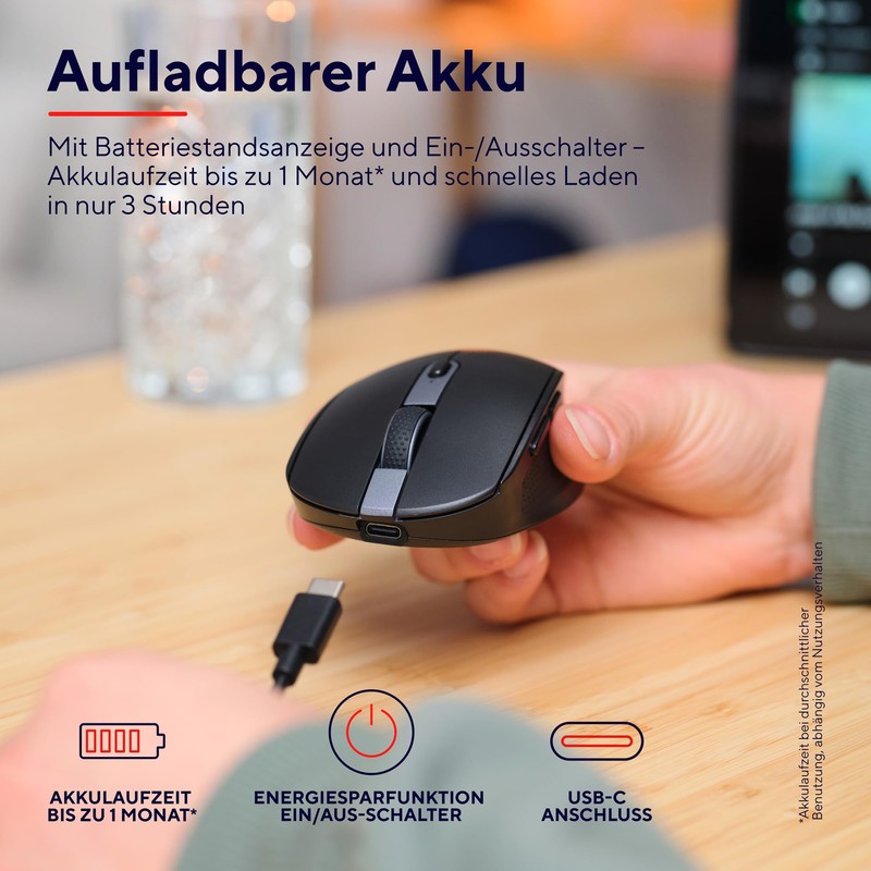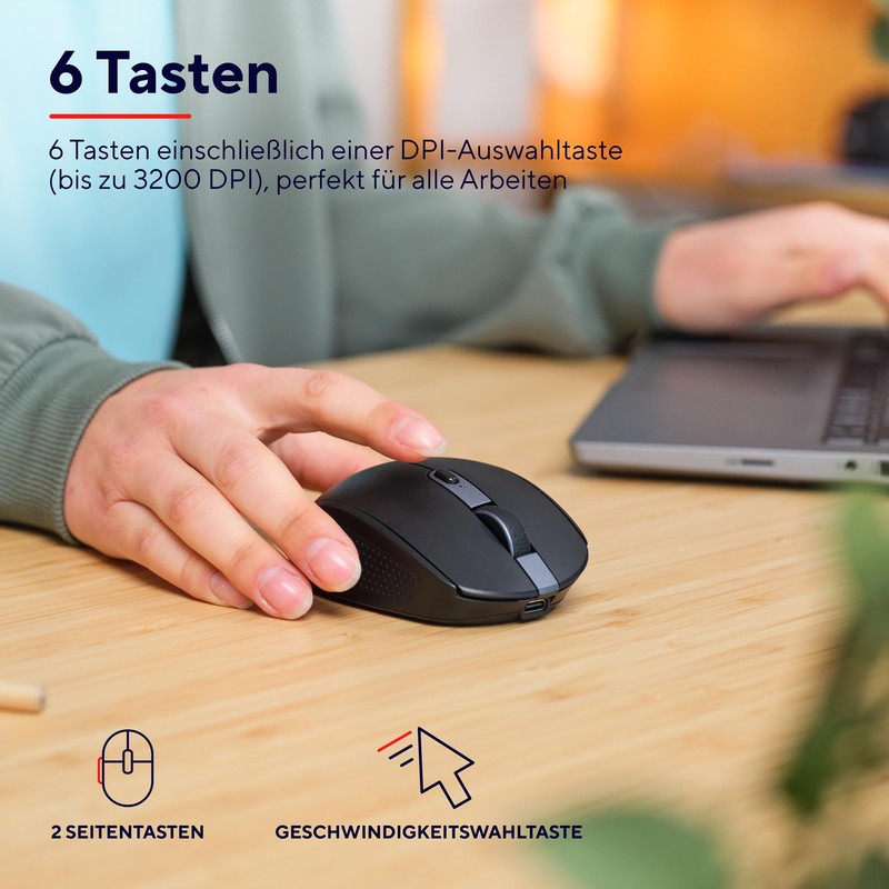 - SCHNELL UND LEISE – Dank einstellbarem dpi-Wert (800–3200) und der leisen Maustasten ermöglicht die Ozaa ein produktives Arbeiten, bei dem Sie und andere nicht gestört werden