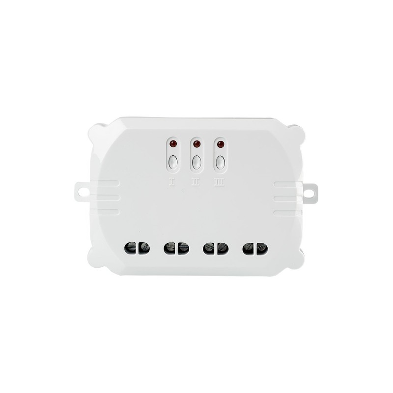 - 3-in-1 built-in switch for wireless switching of up to 3 independent lamps/devices (max. 3500 watts). For wireless switching of up to 3 lamps/devices. Can be easily installed in a cabinet or control box. IP 44 splash-proof switch box available to install this product anywhere outdoors. Box contents: 3-in-1 built-in switch, instruction manual (English language not guaranteed)