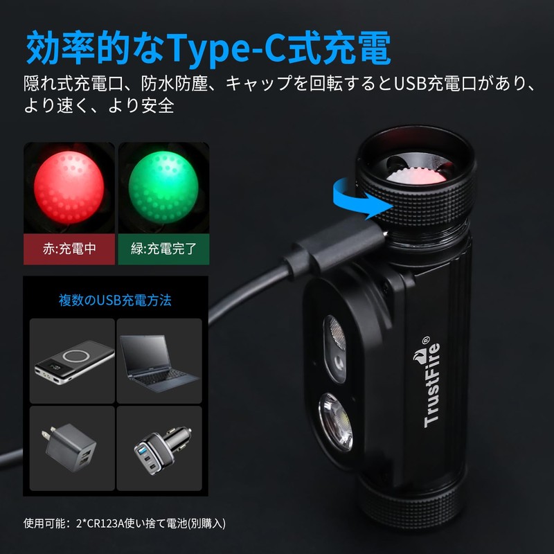 Trustfire H6R Headlight, USB Rechargeable, LED Light, 1,350 Lumens, Flashlight, Powerful, High Brightness, Ultra Lightweight, LED Handy Light, Headlamp, CRI95 High Color Rendering LED, 180°