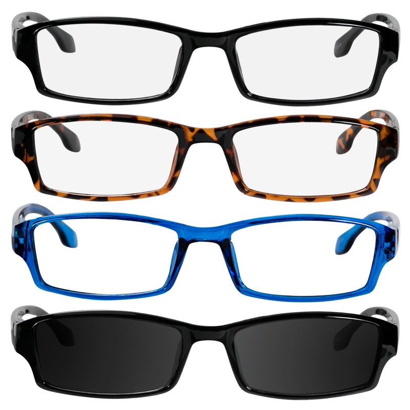 - 1. Full Frame Rectangular Design: Comfort spring hinges for men and women. Multi-color polycarbonate frames with crystal clear or black tinted acrylic lenses are lightweight for hours of wear.