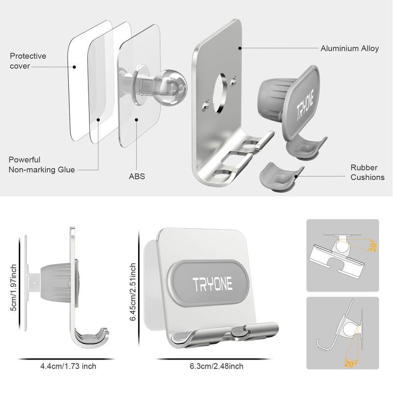 - What You Get1*Tryone Wall Phone Mount, 2*Upgraded Adhesive.