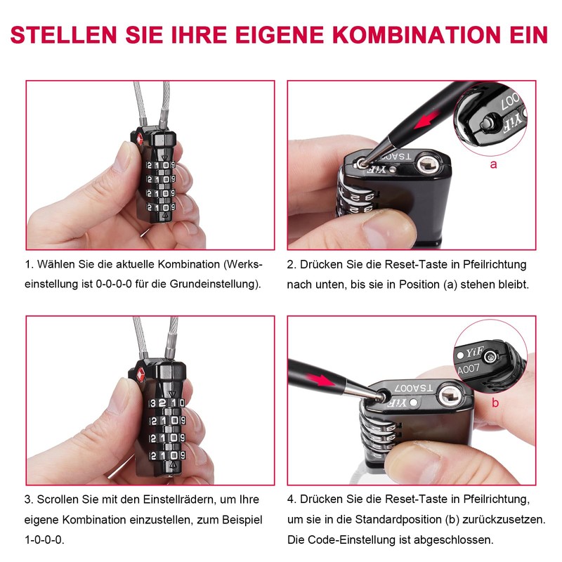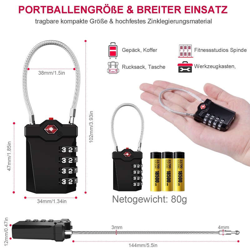 - ✈Safe and robust: the TSA luggage lock 4 digit allows you to set your own combination with 10,000 options. This is ten times safer than a 3-digit lock. Made of high-strength zinc alloy, the TSA combination lock is robust enough to survive even the toughest luggage conditions. The sliding opening feature is advanced and unique on the market. It is highly resistant to technical and violent unlocking.
