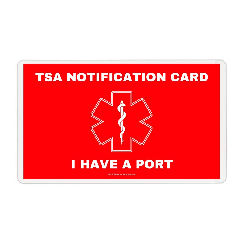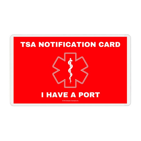 The front of the card is bright red and clearly states that you have a PORT, the cards message cannot be missed. This alone should help you stream through the inspection station. TSA agents are very familiar with screening people with PORTS. Once they see your condition notice that you have a PORT, they will know how to appropriately handle your screening.