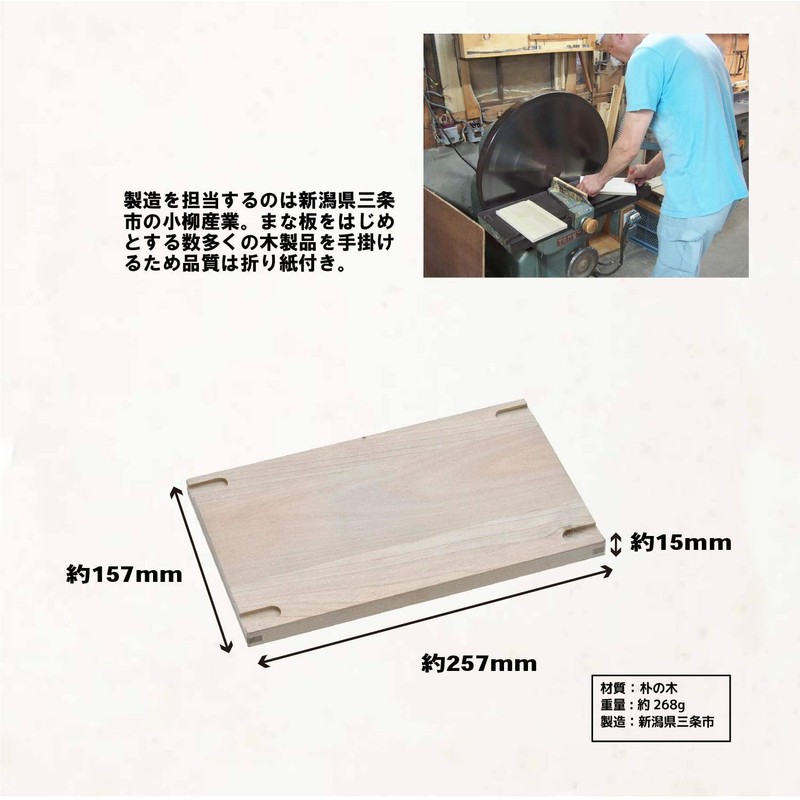- [Product Details] Material: Magnolia Wood; Weight: Approx. 9.5 oz (268 g); Size: Width: Approx. 10.0 inches (257 mm); Height: Approx. 0.6 inches (15 mm); Depth: 6.2 inches (15 mm); Manufacturer: Sanjo City, Niigata Prefecture
