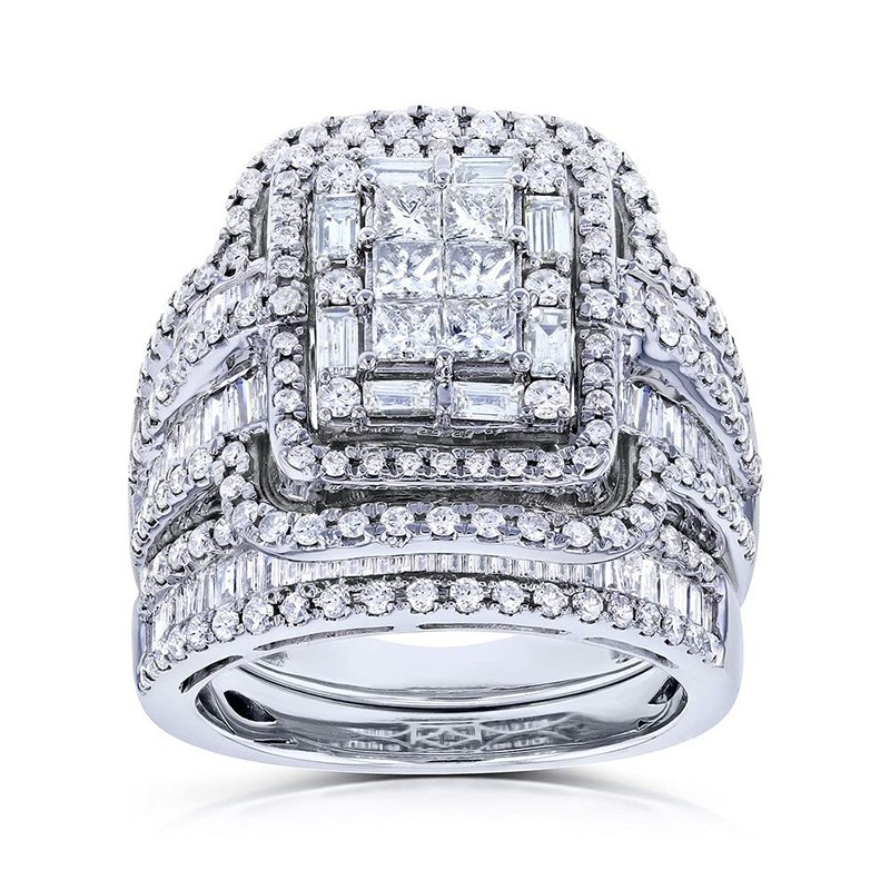 TSECIMGS Shiny Full CZ Diamond Gemstone Ring Luxurious Ring Platinum-Plated Sparkling Bold Elegant Cubic Zirconia Promise Statement Eternity Engagement Wedding Band Ring Sets for Women(10)