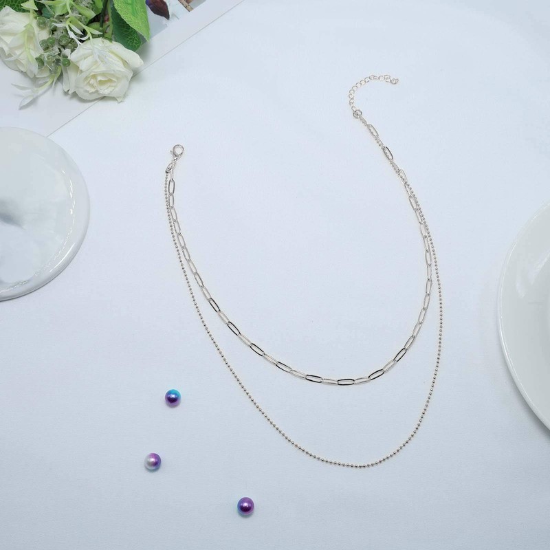 - Silver link chain made of high quality alloy, easy to wear.