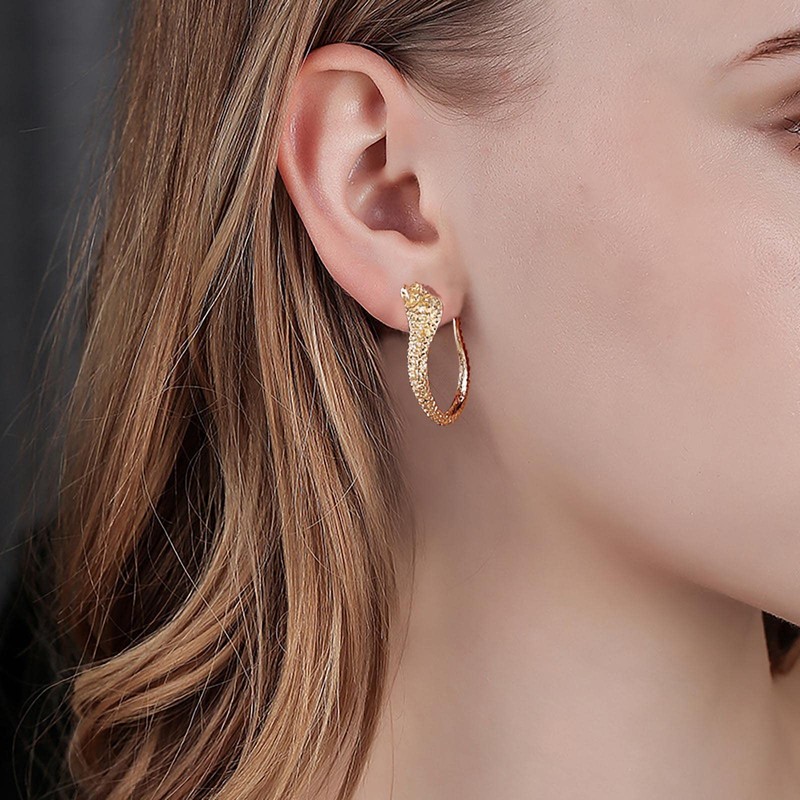 - Gold snake earrings.Item Details:Handmade Item.Size:As Shown.Color:Gold.Materials:Quality Alloy.Location:Earlobe.Style:Boho/Vintage.