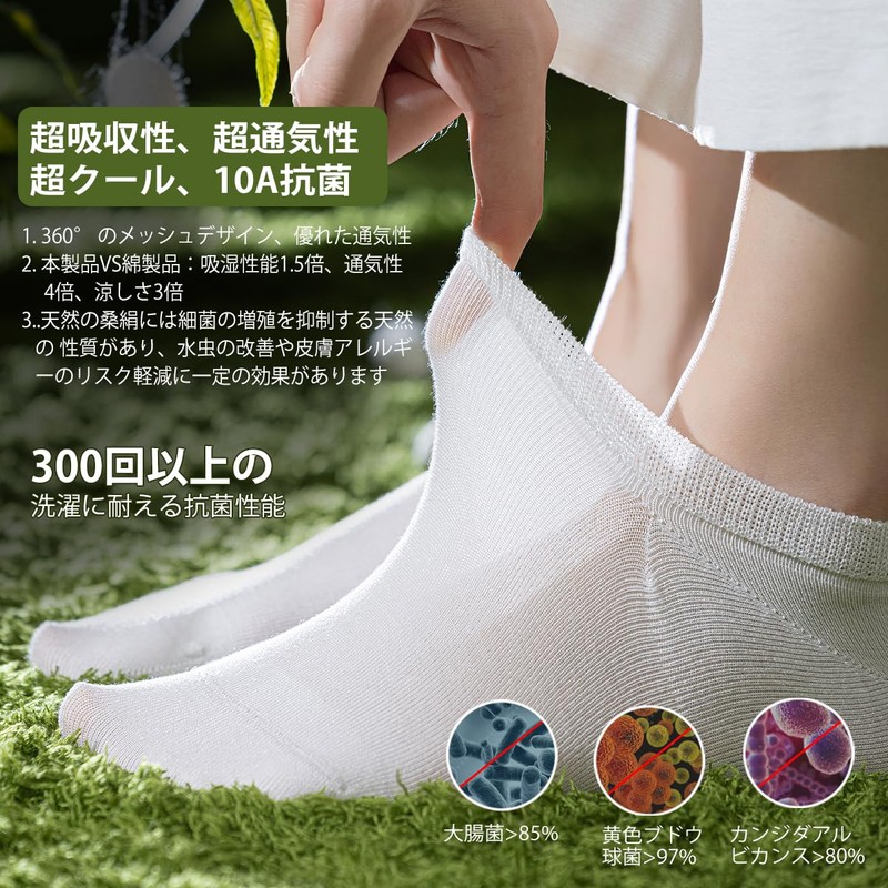 - 2. わずか0.1cmの薄さで、通気性は普通の靴下の4倍以上。蒸れや臭いにさよなら。モダールと桑絹の混紡素材は、純綿の2倍の吸湿性があり、汗を素早く吸収し、足を爽やかに保ちます。涼感は普通の靴下の4倍。セミの羽のように薄く、軽くて通気性に優れています。