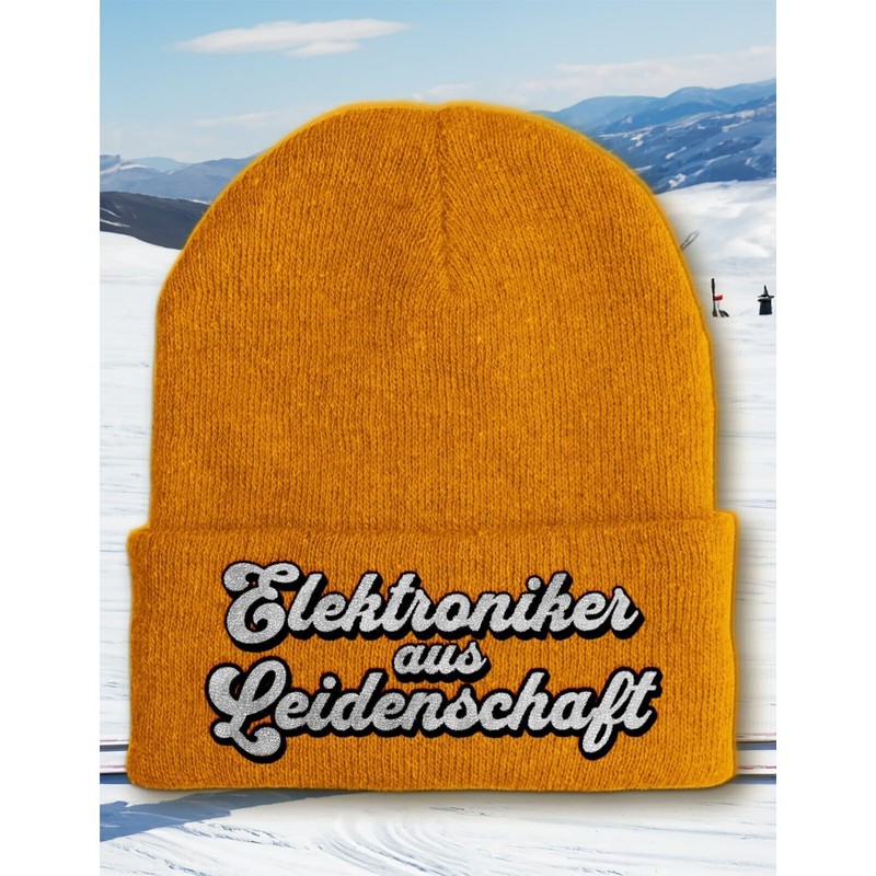tshirtladen Elektroniker aus Leidenschaft – Bestickte Beanie Mütze – One Size – Soft Touch – Wintermütze mit Farbauswahl, Farbe: Mustard