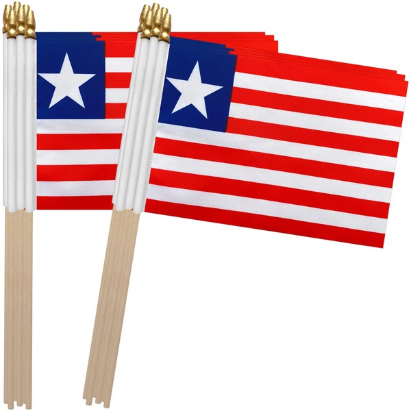 TSMD Liberia Stick Flag Liberian Small Mini Handheld Flags,5x8 Inch,12 Pack