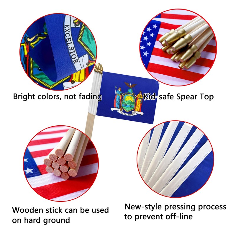 - QUANTITY - 5.5x8.2 Inch New York stick flags, 12.6 inch wood stick,pack of 12.