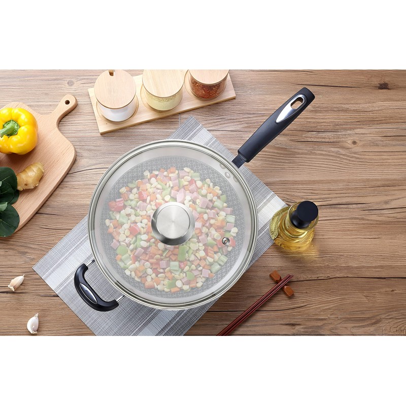 - Clear Visible:transparent pot cover,no other design,can clearly observe the food state during cooking.Stainless steel edging, arc smooth design, reduce collision loss, good sealing