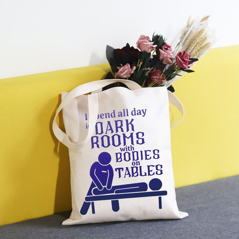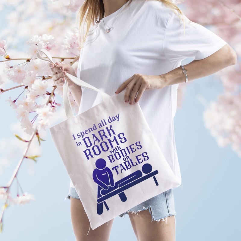 TSOTMO Mortician Shopping Bag I Spend All Day Dark Rooms With Bodies On Tables Mortician Tote Bag Gift for Men Women (On Tables toteCA)
