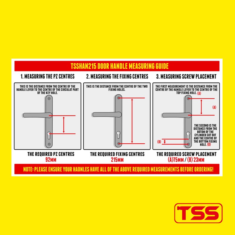 - PVC Door Handle Measurements: Screw Centres: 215mm (Screw Centre to Screw Centre) Backplate: 246mm x 32mm PZ (Centres): 92mm (From the centre of the Keyhole to the centre of the Door Handle Spindle) Handing: Non Handed (Can be used on Left or Right Handed Doors)
