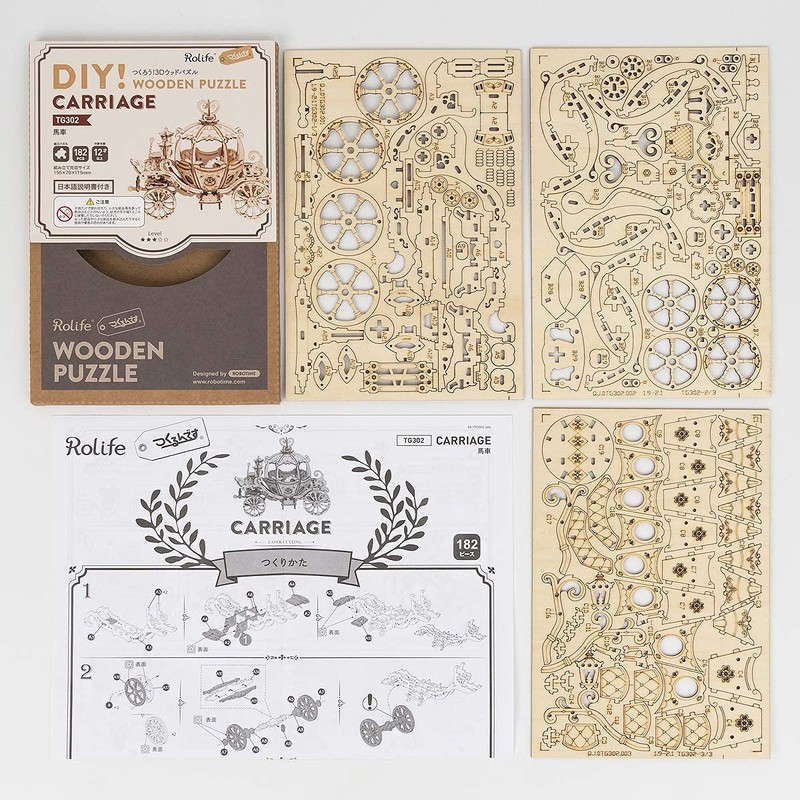 Tsukurun Desu® Robotime TG302 Carriage 3D Wooden Puzzle (Japanese Version)