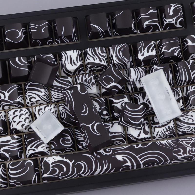 Tsungup Shine Through PBT Keycaps,138 Keys Custom Cool Dragon Pattern Side Printed Keycaps,Cherry Profile Key Caps Keyboard Keycap Set for 60% 65% 75% 80% 100% MX Switches Mechanical Keyboard(Black)