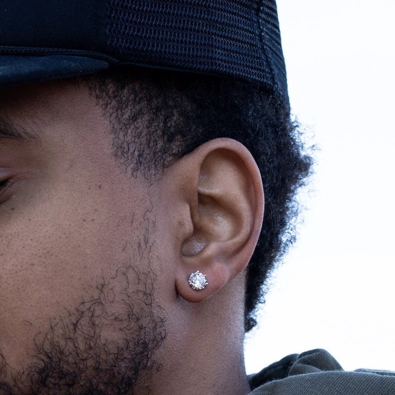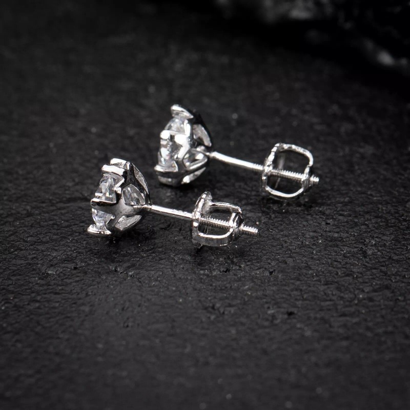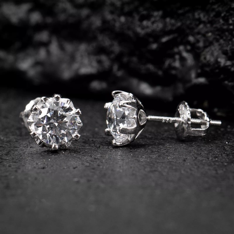 - Round Screw Back Stud Earrings For Men: These round cut solitaire flower cluster earrings are not just fashionable but also small and durable. The gold stud earrings are a perfect blend of hip hop jewelry and luxury.
