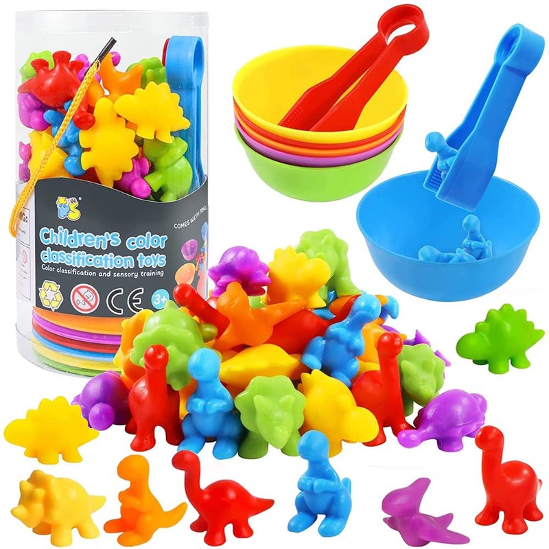 TSZCOO Juguetes Didacticos, 56pcs Juguete Montessori Contar,Juguete Didactico De Dinosaurio para Aprender Colores, Clasificar, Learning Resources Matemático Montessori,Juguete Educativo para Niños