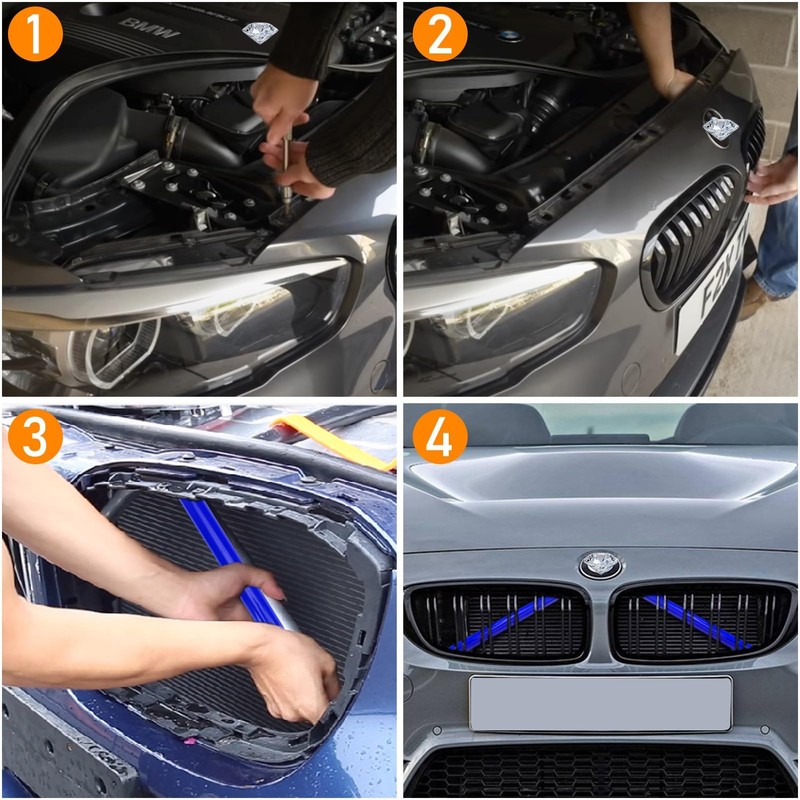 - 【Sports Style】: New design based on the original car, perfectly fit your luxury car. Bright color makes your grille much more unique full of sport style,so they are usually used as a unique car sport styling decoration. The grille stripes trims improve your vehicle's exterior styling, bring a unique luxury look.