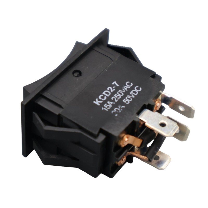 - The contact type of this power switch is DPDT, the number of pins is 4, the operation type is instantaneous no lock, 3 positions (ON) - OFF - (ON), the rated value of the switch is 16A 250V AC 20A 125V AC