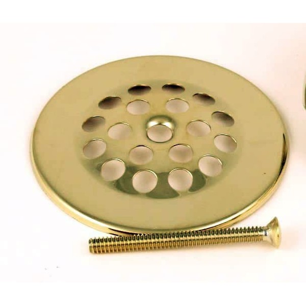 Tub and Shower Bath Grid Drain Strainer with Screw, 2-7/8 Inch, 1-Pack, Grid Bathtub Strainer, Polish Brass Finish - by PlumbUSA 51055PVD