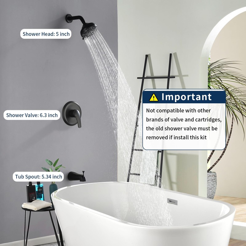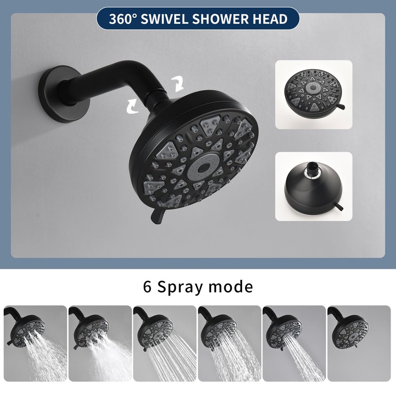 - Tub shower faucet set: with 5 inches shower head with 6 modes brings you more different shower experience.