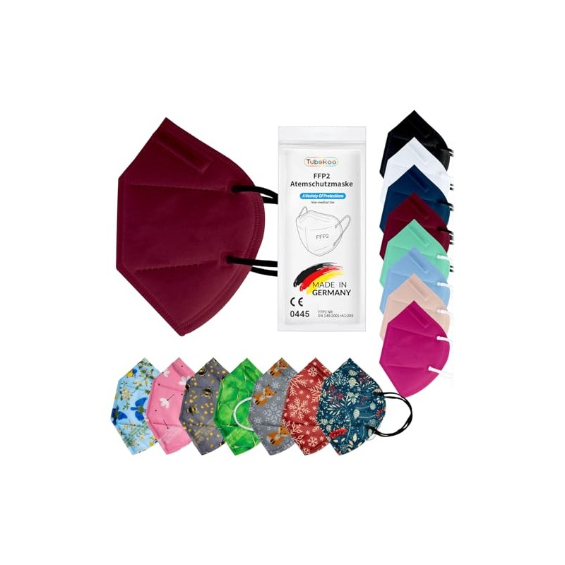 TubeRoo FFP2 Mask Dark Red Bordeaux Cherry Red Pack of 10 Masks from Germany, Made in Germany, Soft Round Ear Loop Bands, Respirator Mask, Mouth Guard, Protective Mask, Dust Mask, Allergy