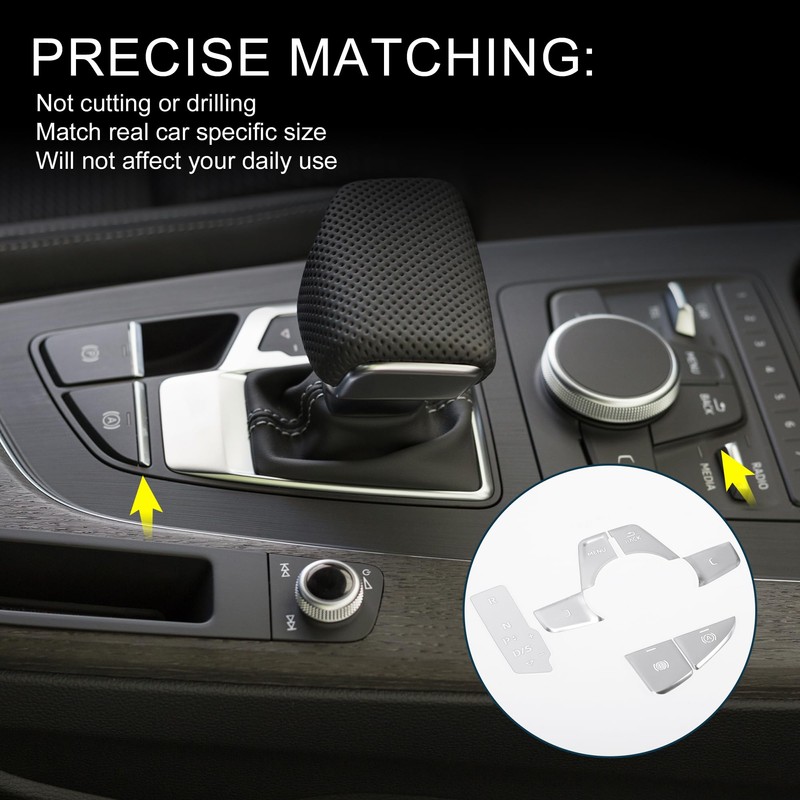 TUCKBOLD Getriebeschalt Multimedia Handbremsen Panel Knopf Schalter Abdeckung für A4 B9 A5 2017-2019 Mittelkonsole Innenraumverkleidung Knopfkappe Dekor Silberton 1 Set