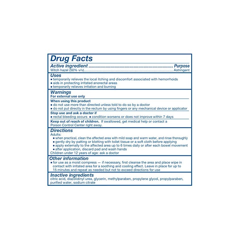 - Tucks Medicated Witch hazel hemorrhoidal Pads, 100 Count Pads