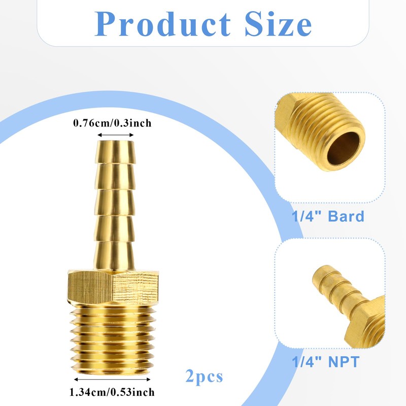 • Precise dimensions: the brass hose connectors have an upper outer diameter of 0.7 cm (0.27 inches) and a bottom thread with a diameter of 1.36 cm (0.53 inches). These exact measurements ensure a perfect fit and a secure connection.