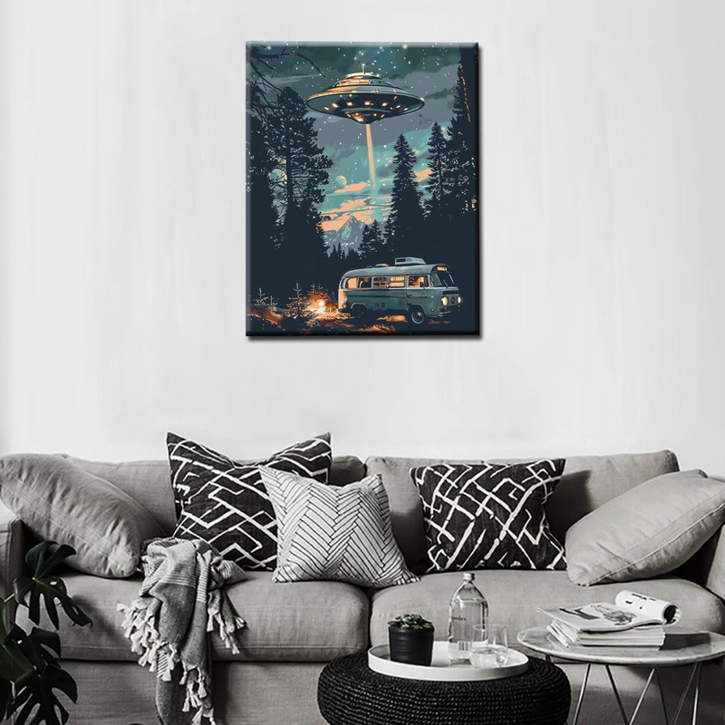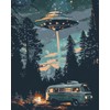 Tucocoo Starry UFO DIY Paint by Numbers for Adults Bus in Forest DIY Oil Painting Acrylic Paint Art Moon Stars Painting Kits Canvas with Acrylic Paint UFO Fantasy Decor 16x20 Inch (Without Frame )
