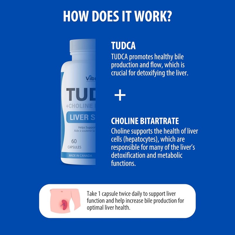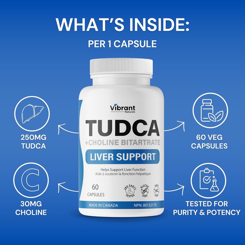 TUDCA Liver Detox & Cleanse – Supports bile flow and liver function with TUDCA & choline. Each capsule delivers 250mg TUDCA & 30mg choline, with 60 vegetarian capsules per bottle. Allergy-friendly, Non-GMO, and third-party tested for quality. Made with pure, trusted ingredients by Vibrant Naturals.