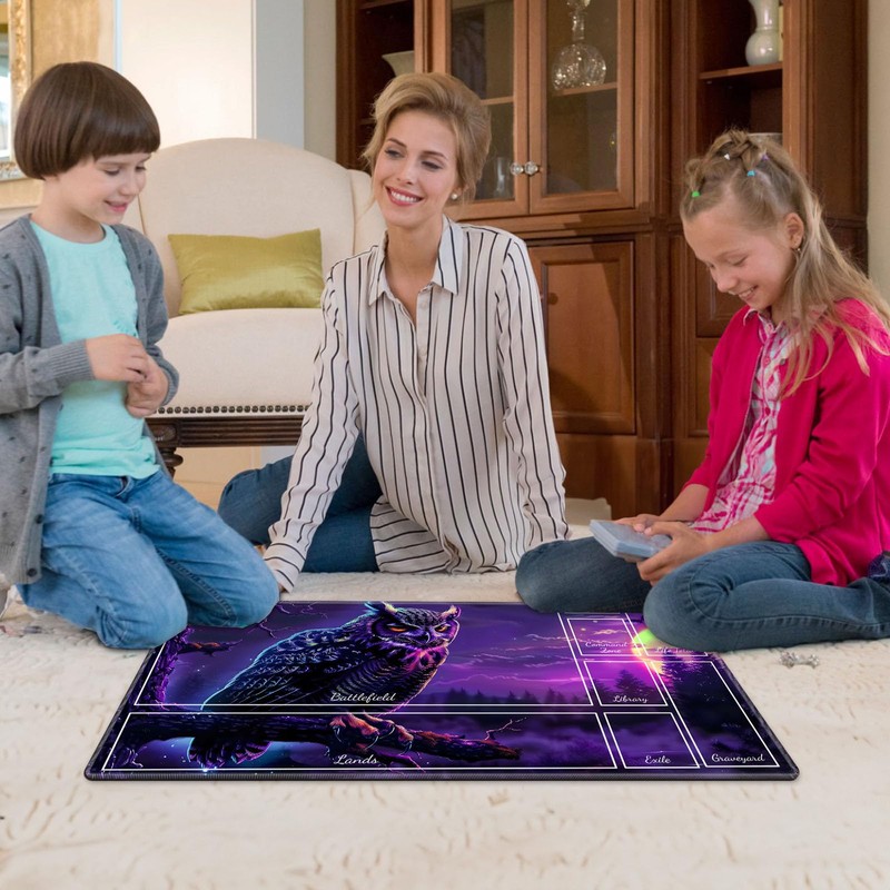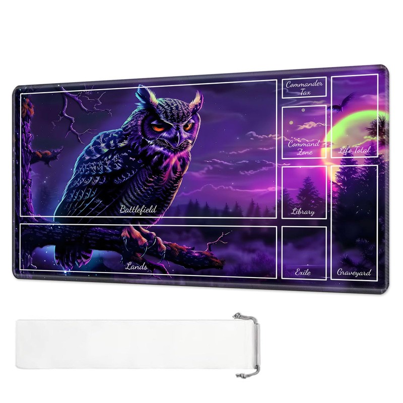 Tudguiloae for MTG Playmat with Zones, Purple Owl Magic Playmats, 28x16 inch Stylish for TCG Card Game Play Mat, Non-Slip Rubber Sole with Play mat Storage Bag, Multipurpose Gaming Playmats
